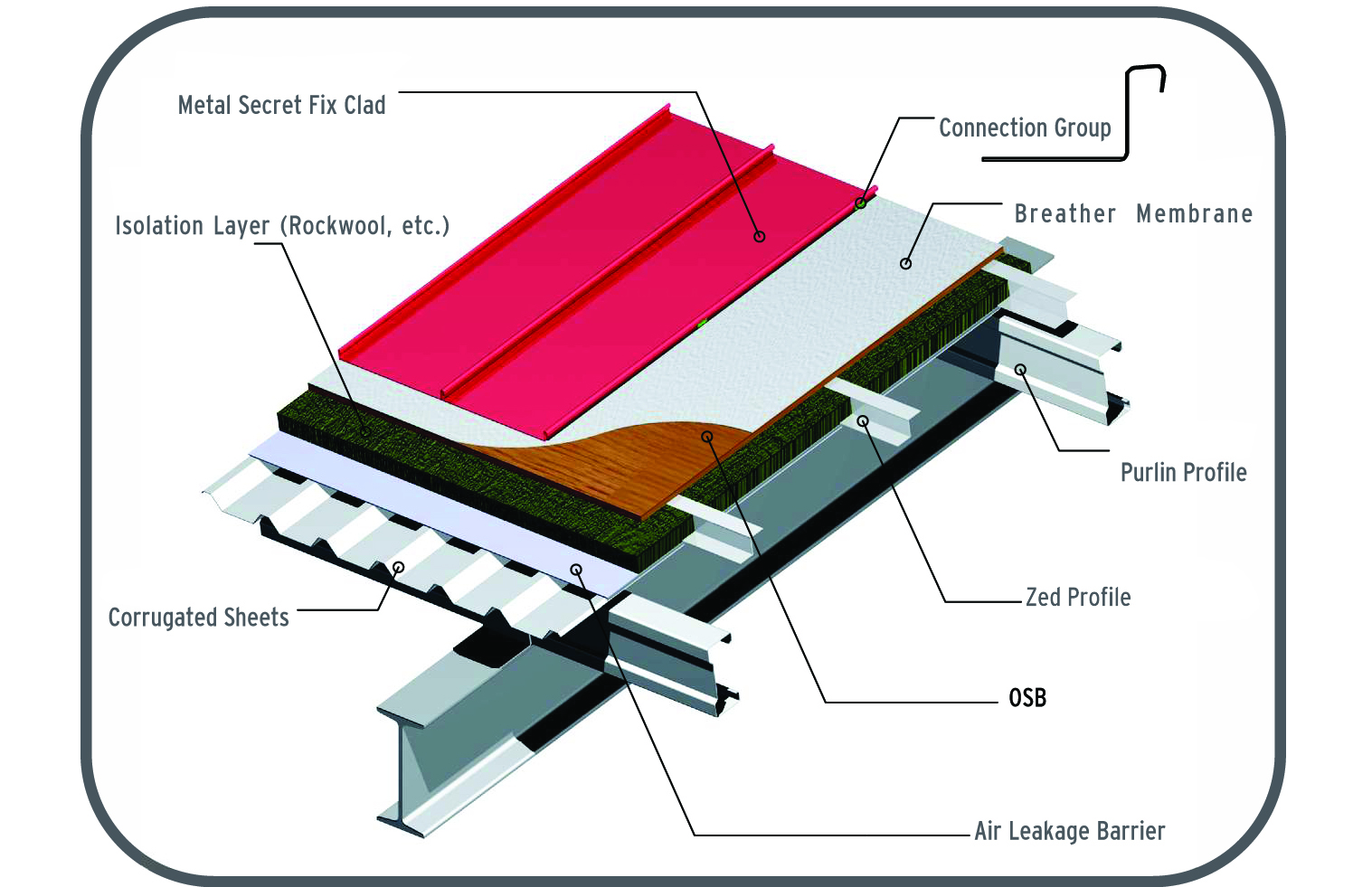 Bu işlem kaplamanın geçirimsizliğini sağlamaktadır.Kenet bölgeleri içerisinde kalan klips üniteleri sabit ve hareketli elemanlardan oluşmaktadır. Konstrüksiyona monte edilen L klips ve içerisindeki oval boşlukta hareket eden hareketli klips sayesinde uzun boylu trapezlerin ısıl genleşmeleri absorbe edilmektedir. Kısa boylu trapezlerin montajında ise sadece sabit klips kullanımı yeterlidir.
