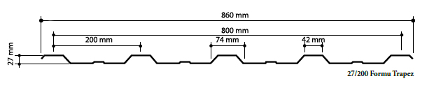 27/200 form trapez sac, boyalı sac malzeme, dış hava şartlarına karşı dayanıklı, kalıcı renk seçeneklerine sahip, uzun ömürlü ve dayanıklıdır.